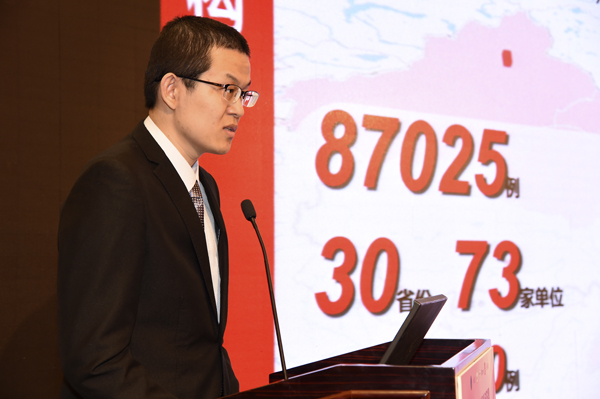 我院苗儒林医师和姚云峰副主任医师分别对联盟参与单位2014-2016年胃癌及大肠癌的诊治情况数据进行汇报。2014-2016年,共有来自30个省份的85家单位参与中国胃肠肿瘤外科联盟,三年共收集到诊疗数据胃癌87025例,大肠癌93258例。数据汇报揭示了联盟参与单位胃癌、大肠癌的诊疗基本情况,对疾病的年龄分布、地域分布、分期、治疗模式、诊治结局等进行了详细介绍。数据显示,近三年来,联盟参与单位胃癌、大肠癌外科诊疗水平不断提高。